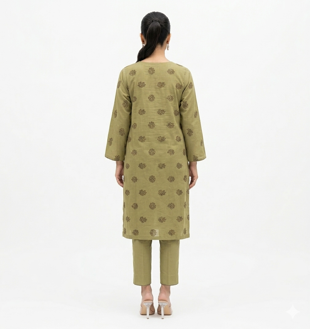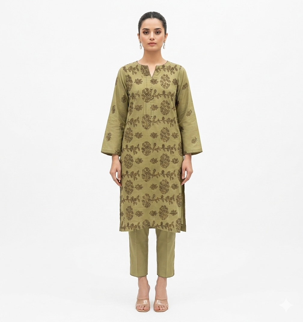 Roma Collection 2026 - 2PC Embroidered Luxury Lawn Suit - Olive GreenRoma Collection 2026 – 2PC Embroidered Luxury Lawn Suit – Olive Green