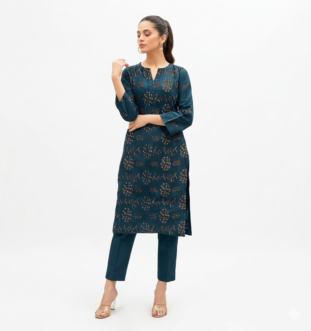 Roma Collection 2026 - Embroidered Luxury Lawn 2PC Suit (Teal Blue)Roma Collection 2026 – Embroidered Luxury Lawn 2PC Suit (Teal Blue)